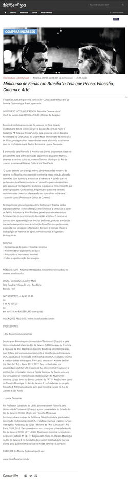 ![]() | ![]() | ![]() Ana Beatriz Antunes e Luame Cerqueira no Canal Curta!, falando sobre o curso "A Tela que Pensa: Filosofia, Cinema e Ficção Científica" - maio de 2017 |